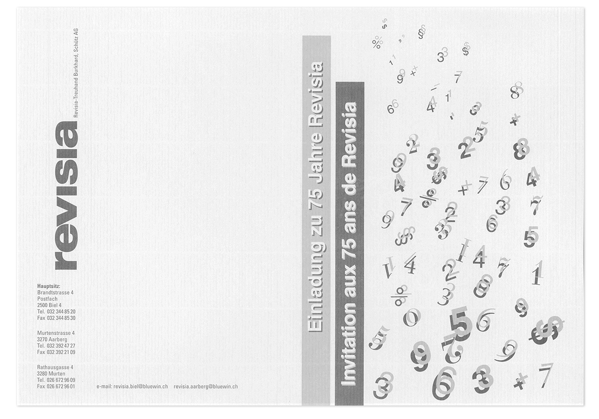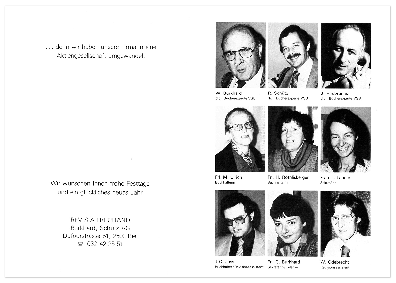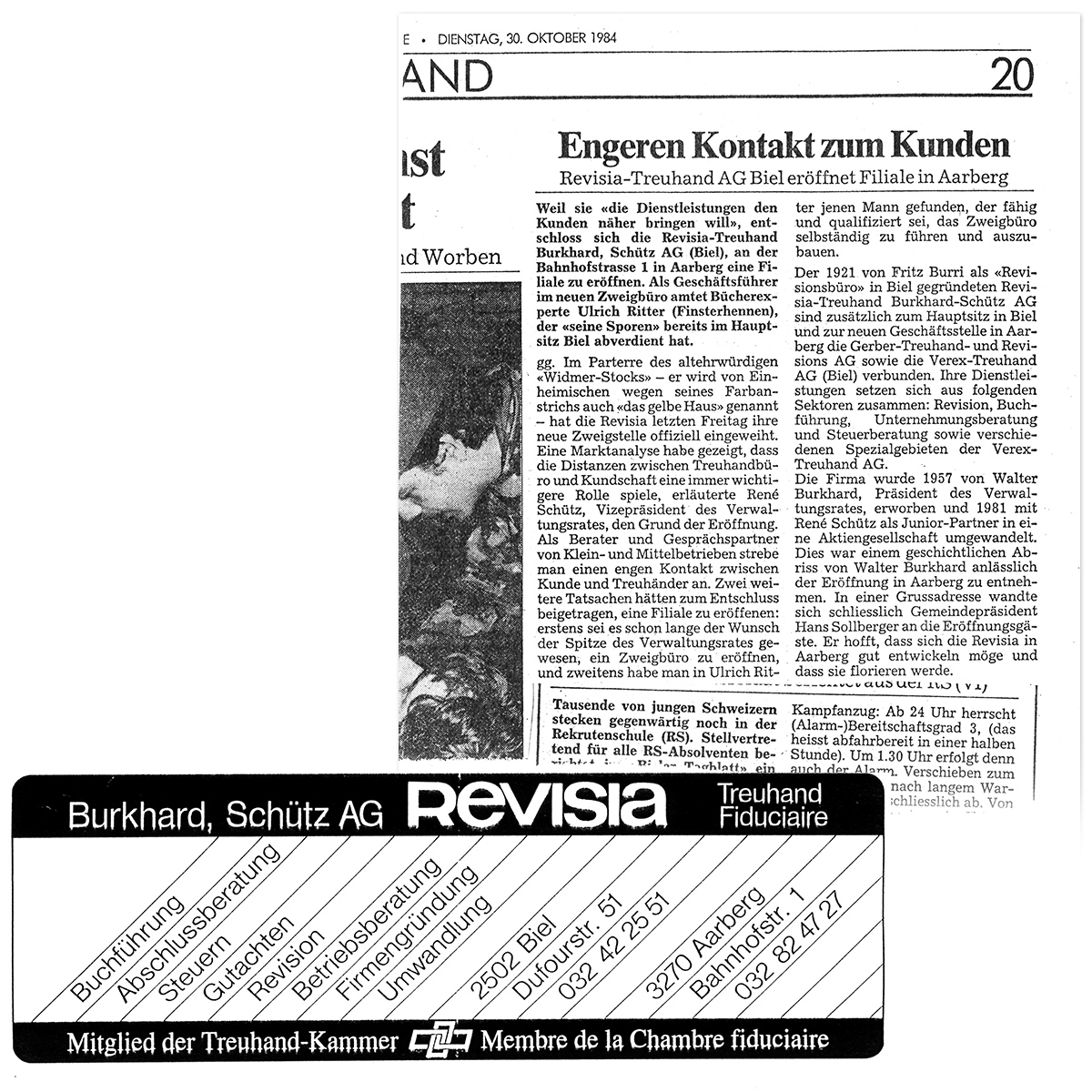 Auflösung der „AG der Vereinigten Bücherrevisoren Revisia“. Fritz Burri führt sein „Bureau Revisia“ als Einzelfirma weiter. Ein Teil seiner Klientschaft, zum Teil in zweiter und dritter Generation, zählt auch noch heute zu unseren Mandanten.